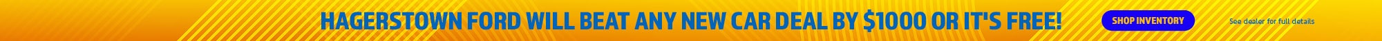 We here at Hagerstown Ford have been happily serving car buyers from Maryland with the highest quality new and used vehicles for many years. We have a vast selection of Ford models that you're looking for in the style you want to match your budget. You can count on us to have the latest F-150, Escape, Explorer, Bronco Sport and Ranger models available. Our new inventory comes in a wide range of options, and our used fleet goes through an extensive quality inspection process. We know the importance of advanced safety features such as lane assist, rear camera monitors, and additional airbags, and that's why you will find the best options packages to meet your needs. We know having options is key to your purchasing decision, and that's why we have no appointment necessary test drives. Stop in today, and we will help you secure the vehicle you desire.